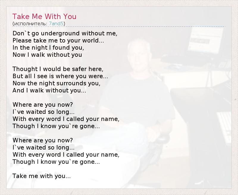 А как ты думаешь, о чем песня "Take Me With You" ?