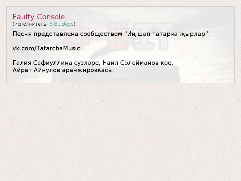 Песня представлена сообществом "Иң шәп татарча җырлар"