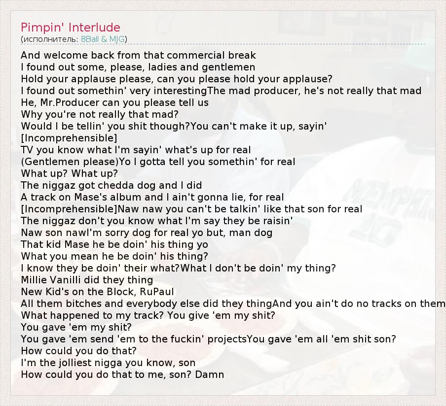 А как ты думаешь, о чем песня "Pimpin' Interlude" ?