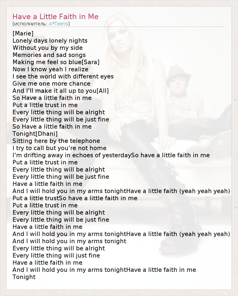 ГлавнаяИсполнителиA*TeensHave a Little Faith in Me