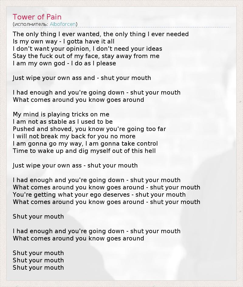 А как ты думаешь, о чем песня "Tower of Pain" ?