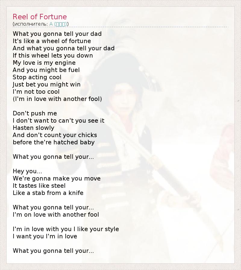 А как ты думаешь, о чем песня "Reel of Fortune" ?