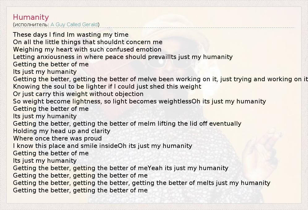Getting the better, getting the better, getting the better of meIts just my humanity