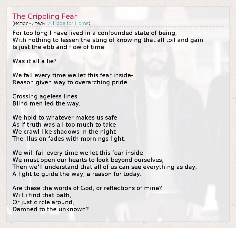 А как ты думаешь, о чем песня "The Crippling Fear" ?