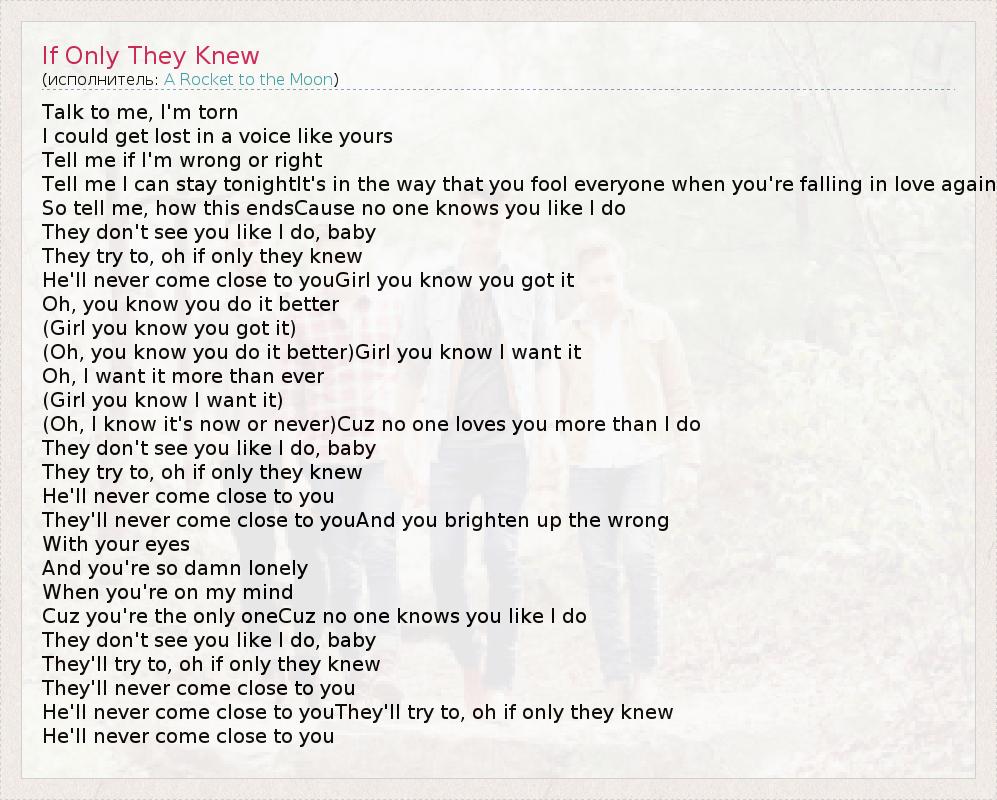 А как ты думаешь, о чем песня "If Only They Knew" ?