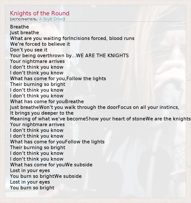 А как ты думаешь, о чем песня "Knights of the Round" ?