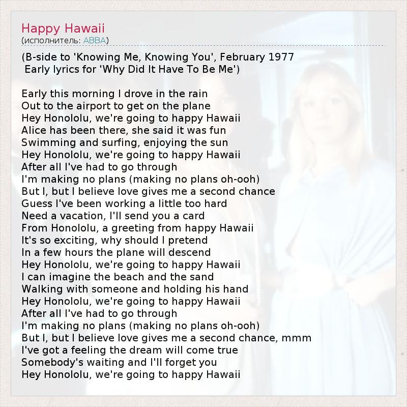 Эй Гонолулу, Я еду на счастливые Гавайи