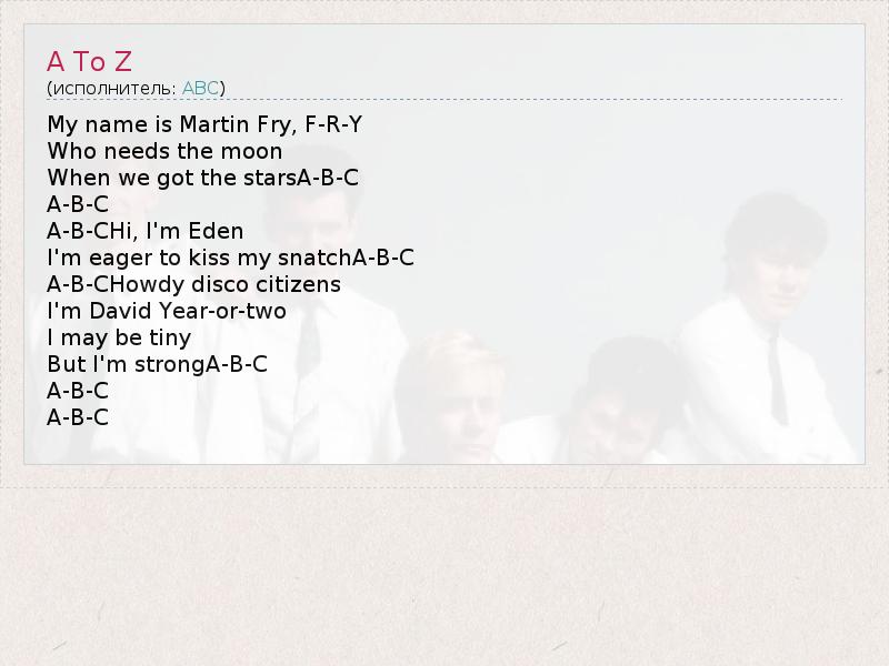 Это интересно:Группа образована в 1980 году в Великобритании.Лидер группы Мартин Фрай организовал АВС на руинах поп-синтез-коллектива Vice Versa. Имея опыт издания достаточно авторитетного в кругах богемной молодежи фэнзина Modem Drugs (фэнзин - малотиражное узкоспециализированное издание, рассчитанное, как правило, на поклонников либо конкретного направления музыки, либо представляющей его группы), Фрай начинает... продолжение