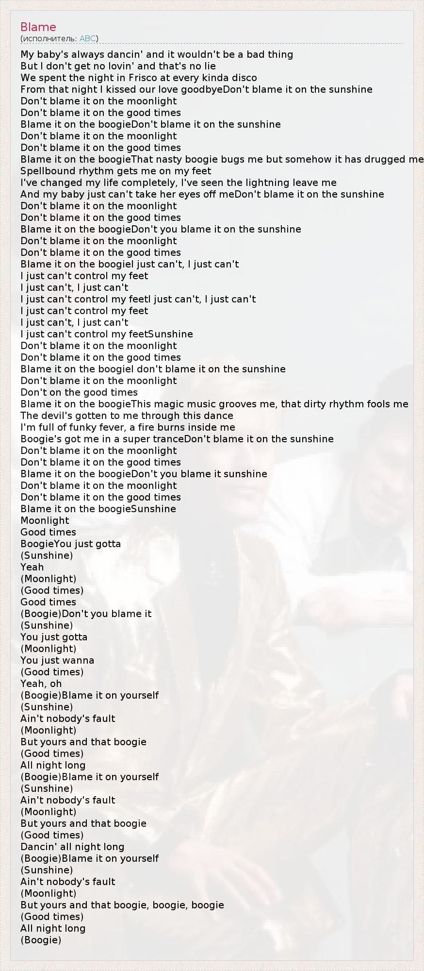 Blame it on the boogieThis magic music grooves me, that dirty rhythm fools me