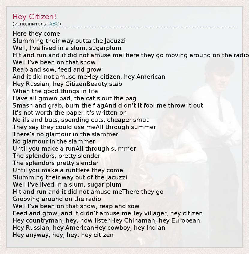 А как ты думаешь, о чем песня "Hey Citizen!" ?