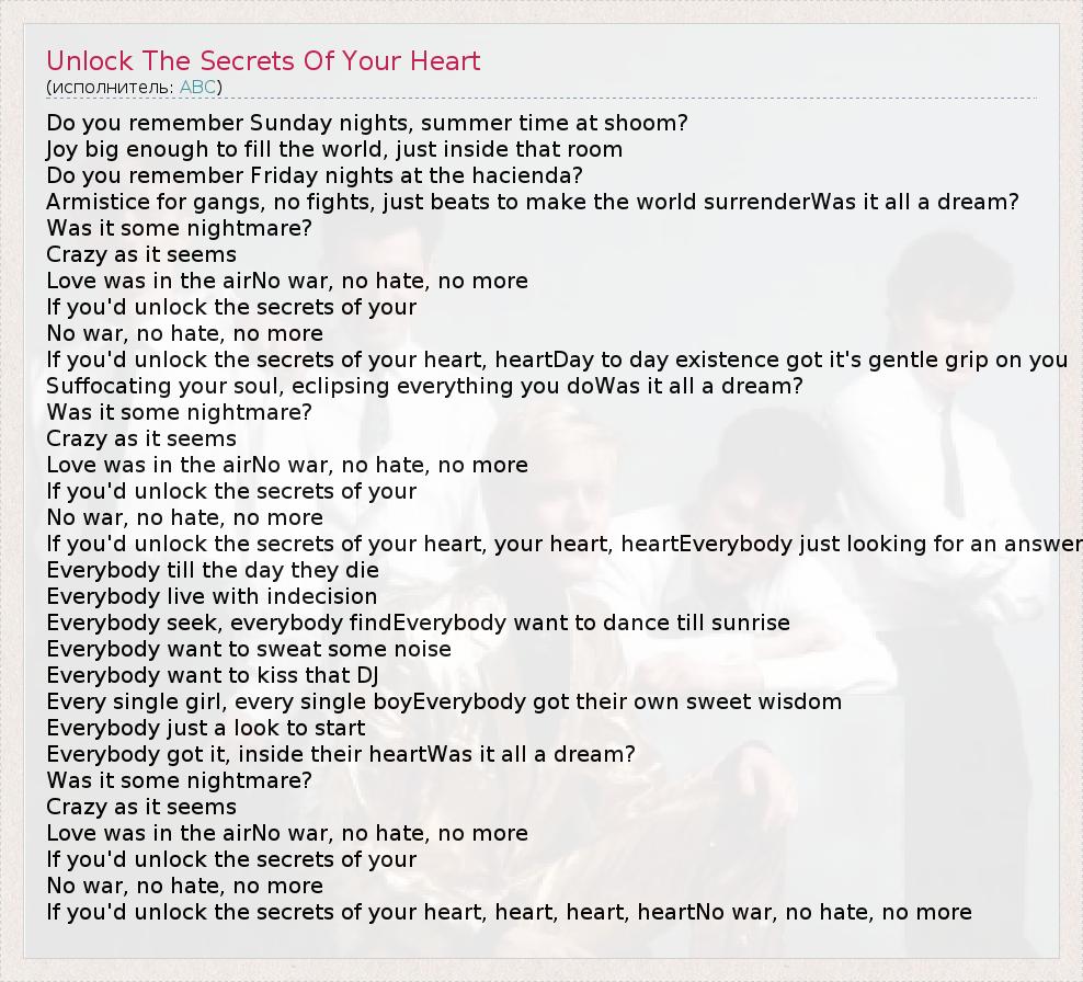 А как ты думаешь, о чем песня "Unlock The Secrets Of Your Heart" ?