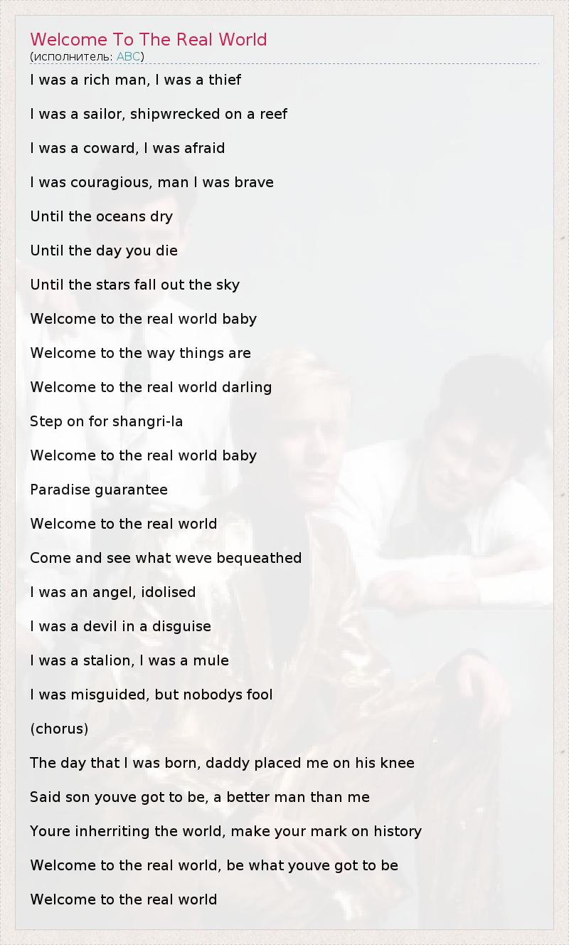ГлавнаяИсполнителиABCWelcome To The Real World