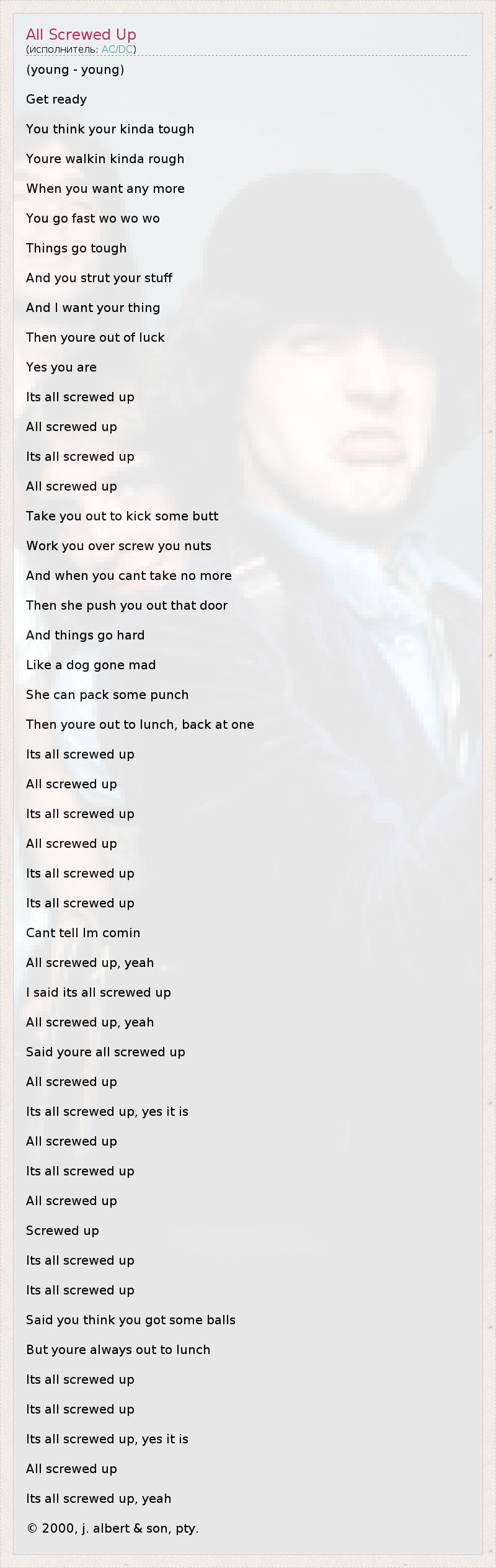 А как ты думаешь, о чем песня "All Screwed Up" ?