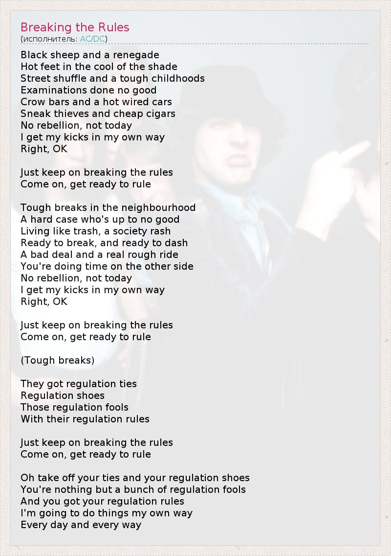 А как ты думаешь, о чем песня "Breaking the Rules" ?