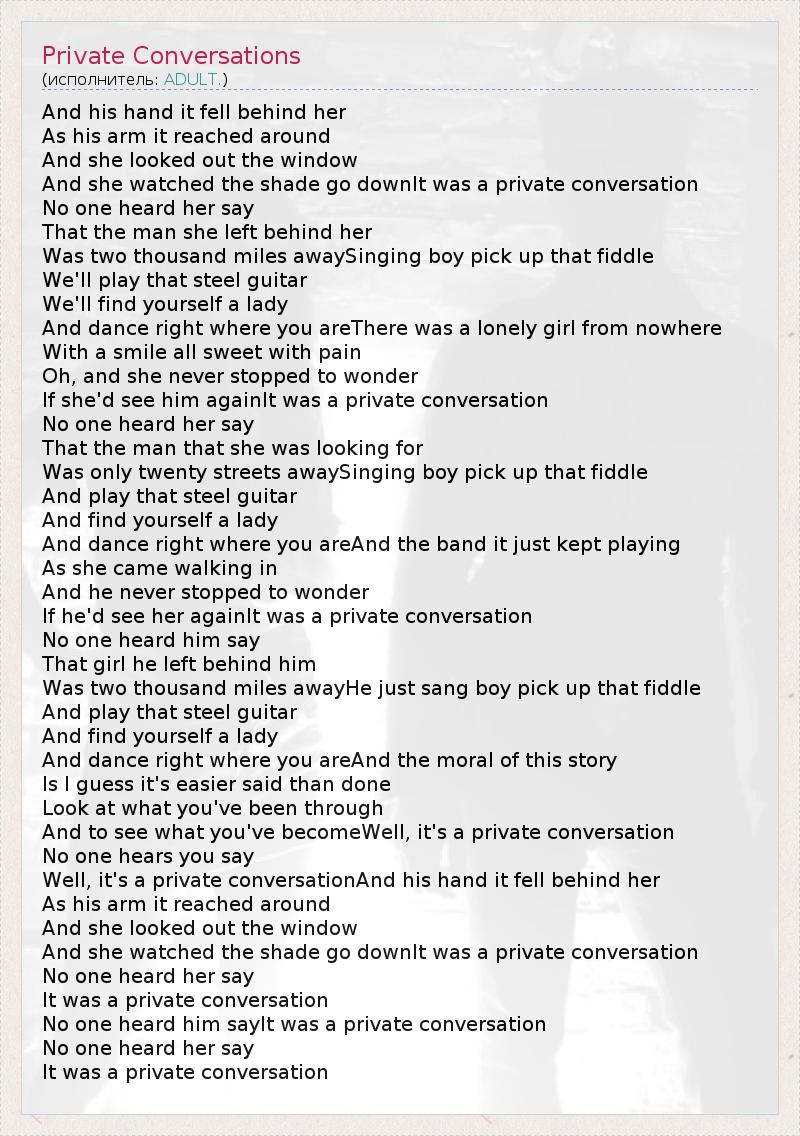 А как ты думаешь, о чем песня "Private Conversations" ?