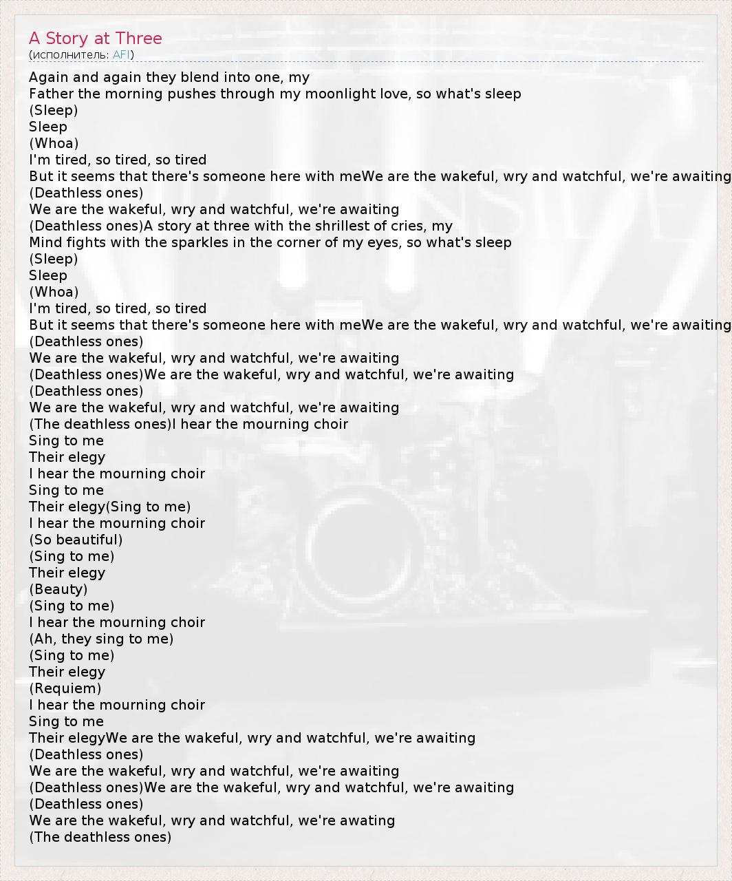 А как ты думаешь, о чем песня "A Story at Three" ?
