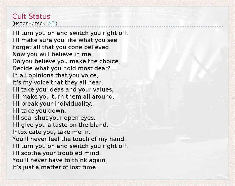 Это интересно:AFI (сокращение для "A Fire Inside") - панк рок / альтернативная рок-группа из города Юкайа, штат Калифорния, сейчас перебравшаяся в Сан-Франциско. Первые шаги A.F.I. в музиндустрии, как и большая часть их еще относительно молодой биографии, прошли скромно и почти незаметно. Настолько же скромно, насколько сами они всегда были обуреваемы эмоциями, о чем свидетельствует их выразительное и совсем... продолжение