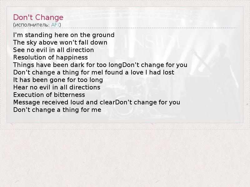 Это интересно:AFI (сокращение для "A Fire Inside") - панк рок / альтернативная рок-группа из города Юкайа, штат Калифорния, сейчас перебравшаяся в Сан-Франциско. Первые шаги A.F.I. в музиндустрии, как и большая часть их еще относительно молодой биографии, прошли скромно и почти незаметно. Настолько же скромно, насколько сами они всегда были обуреваемы эмоциями, о чем свидетельствует их выразительное и совсем... продолжение