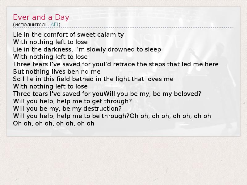 А как ты думаешь, о чем песня "Ever and a Day" ?