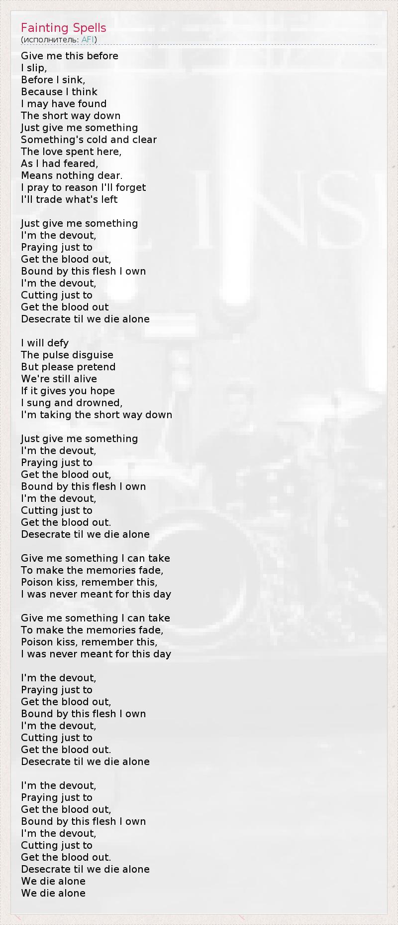 А как ты думаешь, о чем песня "Fainting Spells" ?