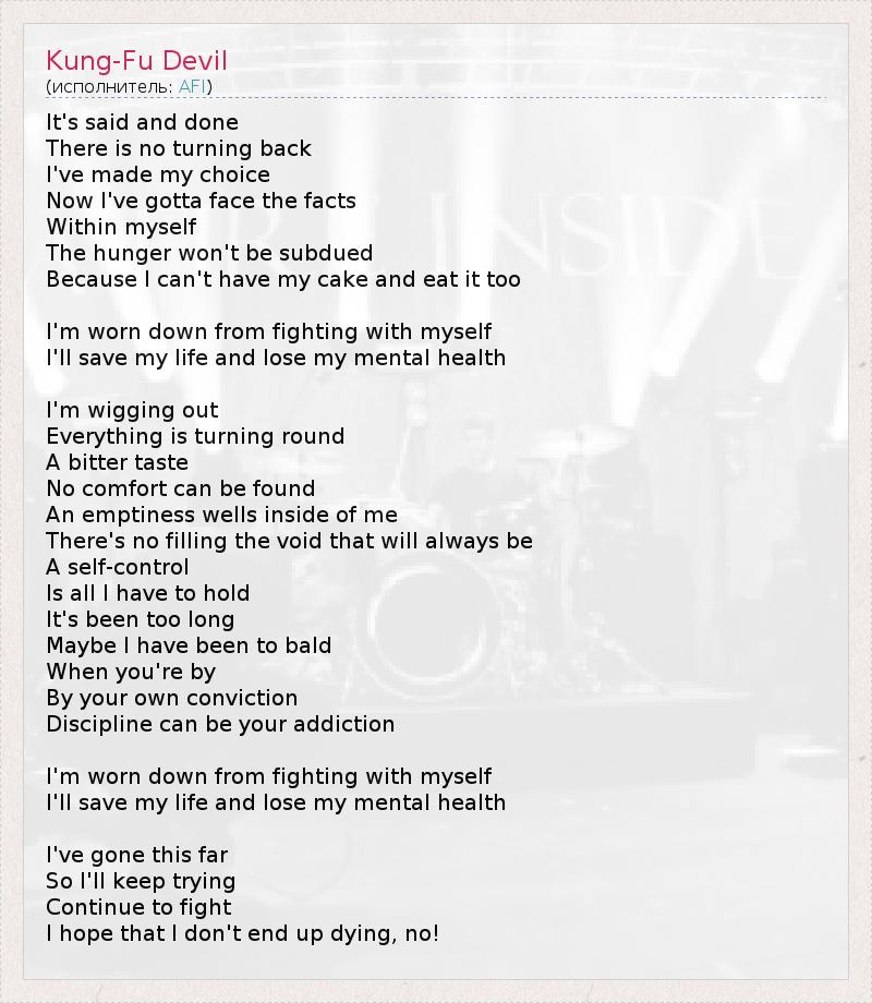 А как ты думаешь, о чем песня "Kung-Fu Devil" ?