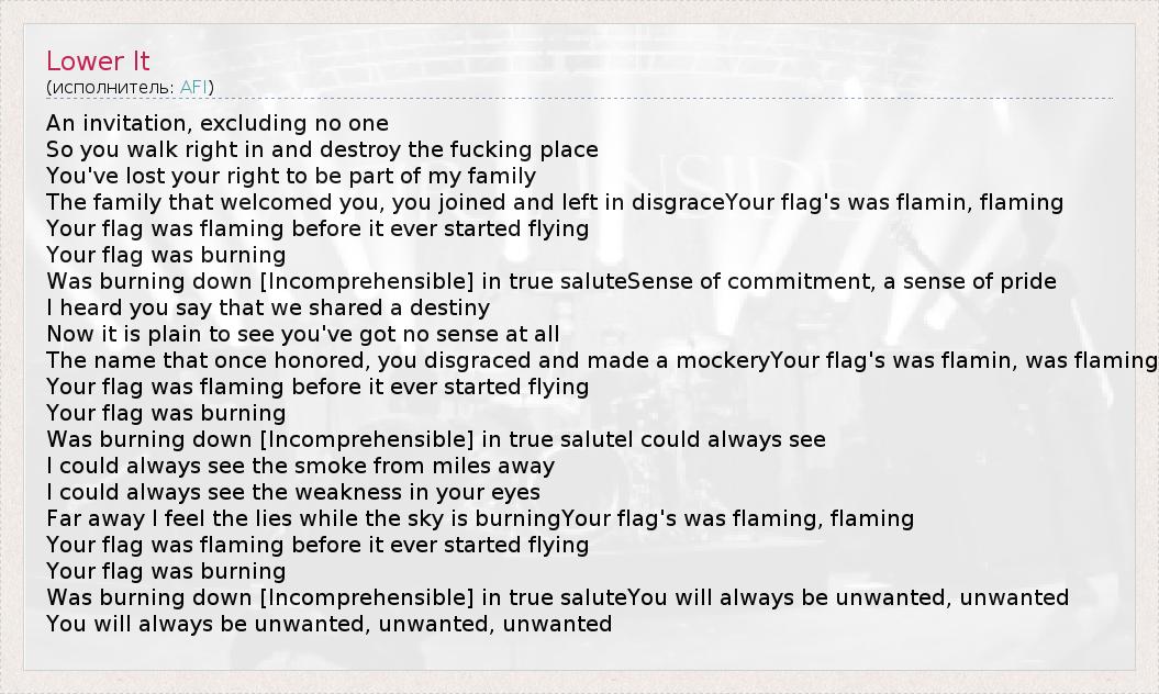 The name that once honored, you disgraced and made a mockeryYour flag's was flamin, was flaming