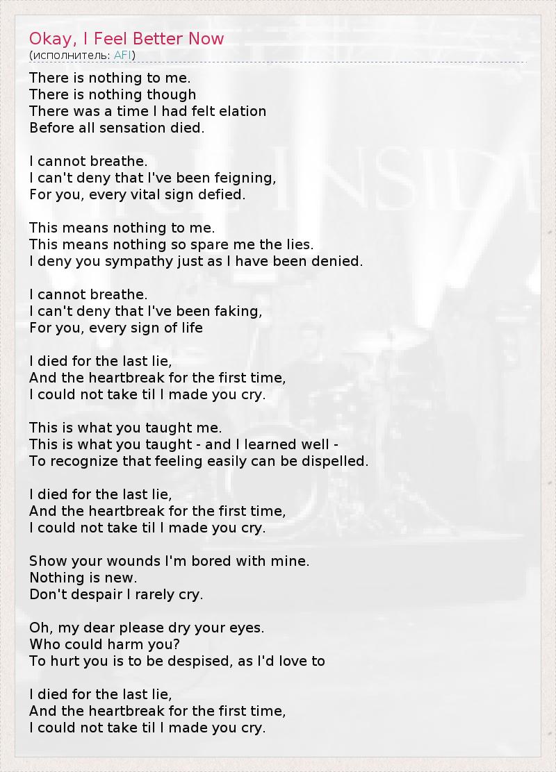 ГлавнаяИсполнителиAFIOkay, I Feel Better Now