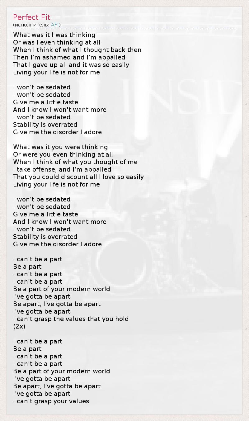 А как ты думаешь, о чем песня "Perfect Fit" ?