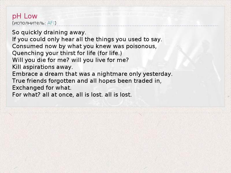 Это интересно:AFI (сокращение для "A Fire Inside") - панк рок / альтернативная рок-группа из города Юкайа, штат Калифорния, сейчас перебравшаяся в Сан-Франциско. Первые шаги A.F.I. в музиндустрии, как и большая часть их еще относительно молодой биографии, прошли скромно и почти незаметно. Настолько же скромно, насколько сами они всегда были обуреваемы эмоциями, о чем свидетельствует их выразительное и совсем... продолжение