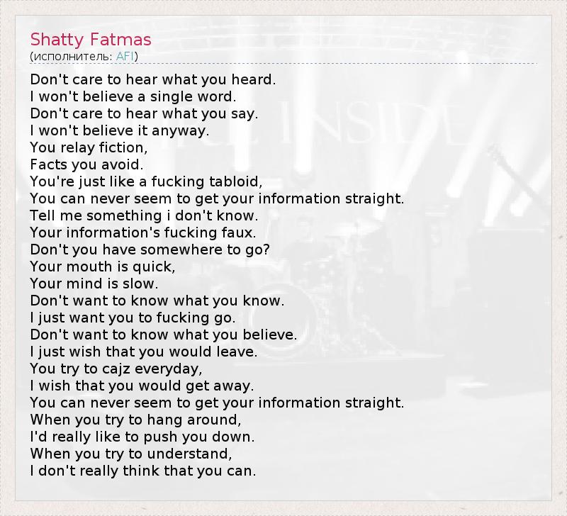 А как ты думаешь, о чем песня "Shatty Fatmas" ?