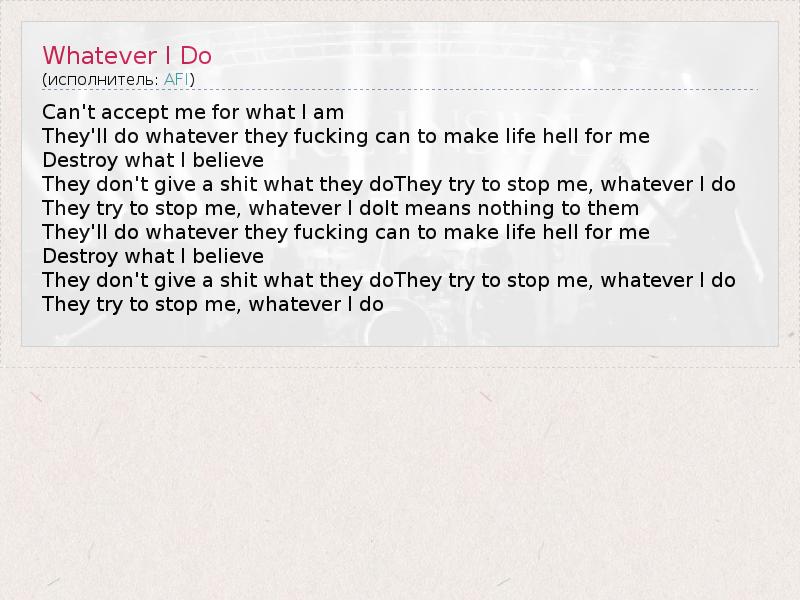 А как ты думаешь, о чем песня "Whatever I Do" ?