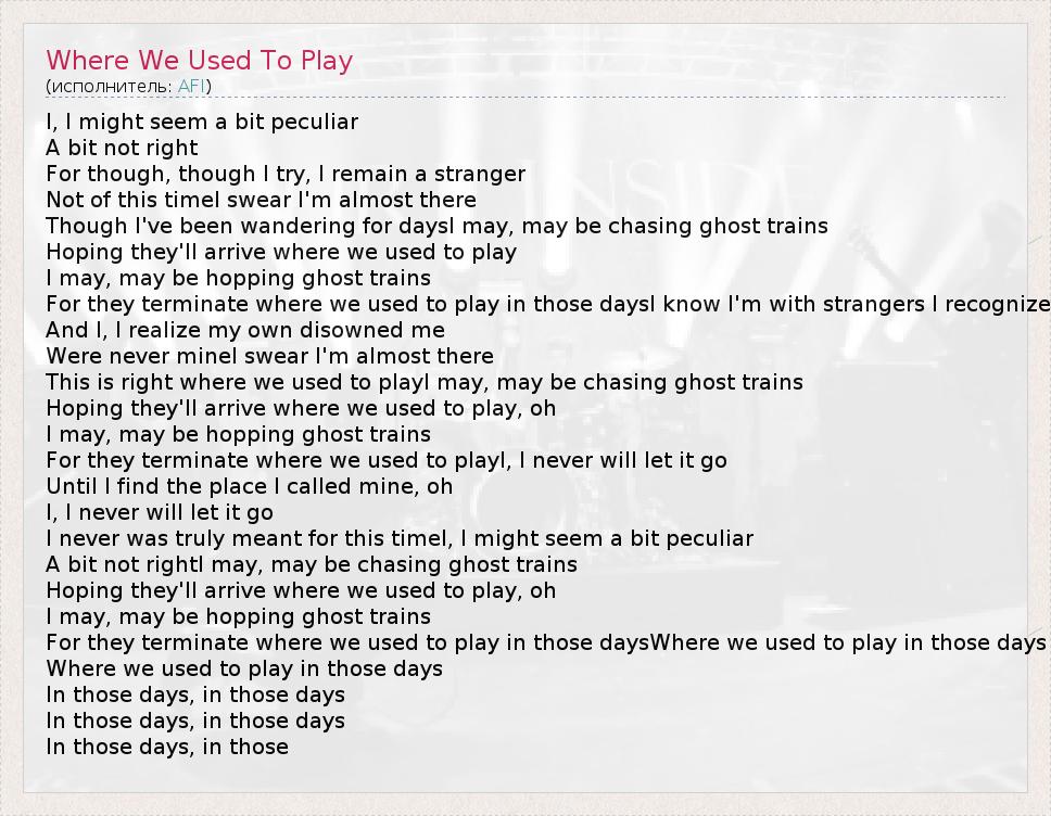 А как ты думаешь, о чем песня "Where We Used To Play" ?