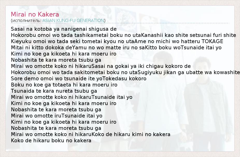 А как ты думаешь, о чем песня "Mirai no Kakera" ?