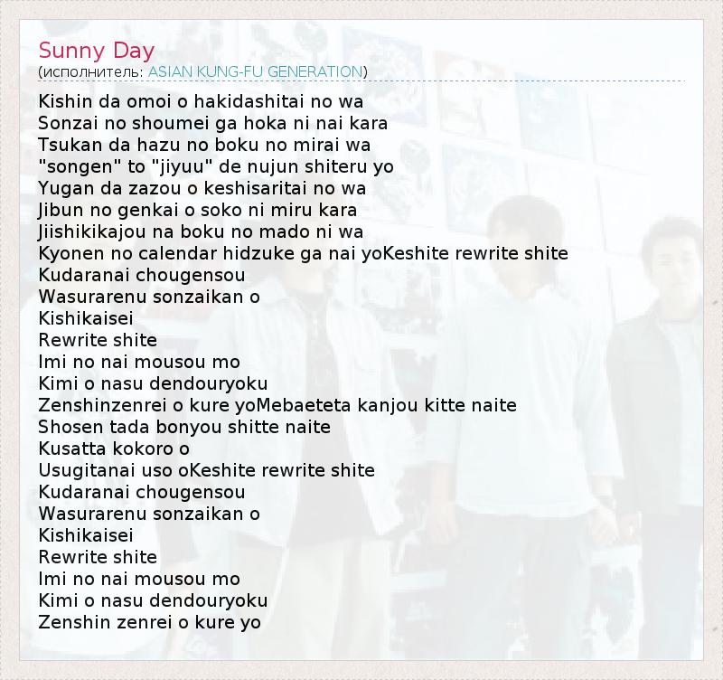 А как ты думаешь, о чем песня "Sunny Day" ?