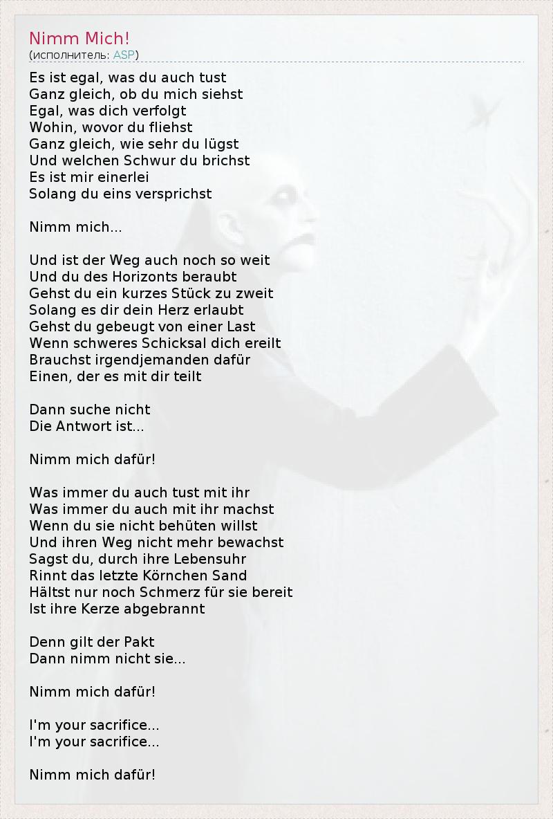 А как ты думаешь, о чем песня "Nimm Mich!" ?