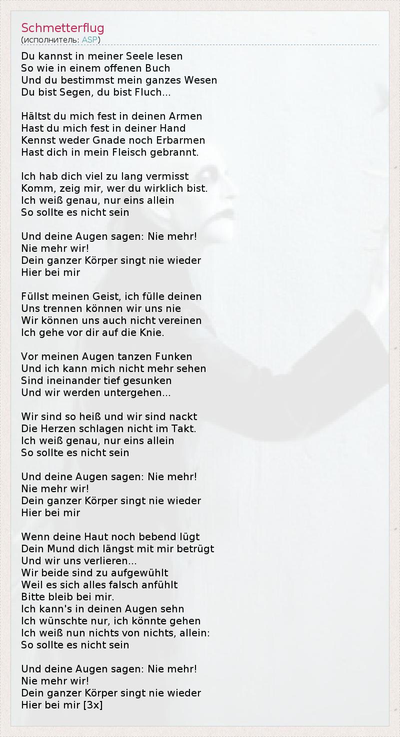 А как ты думаешь, о чем песня "Schmetterflug" ?