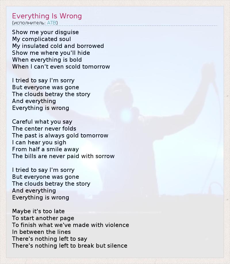 А как ты думаешь, о чем песня "Everything Is Wrong" ?
