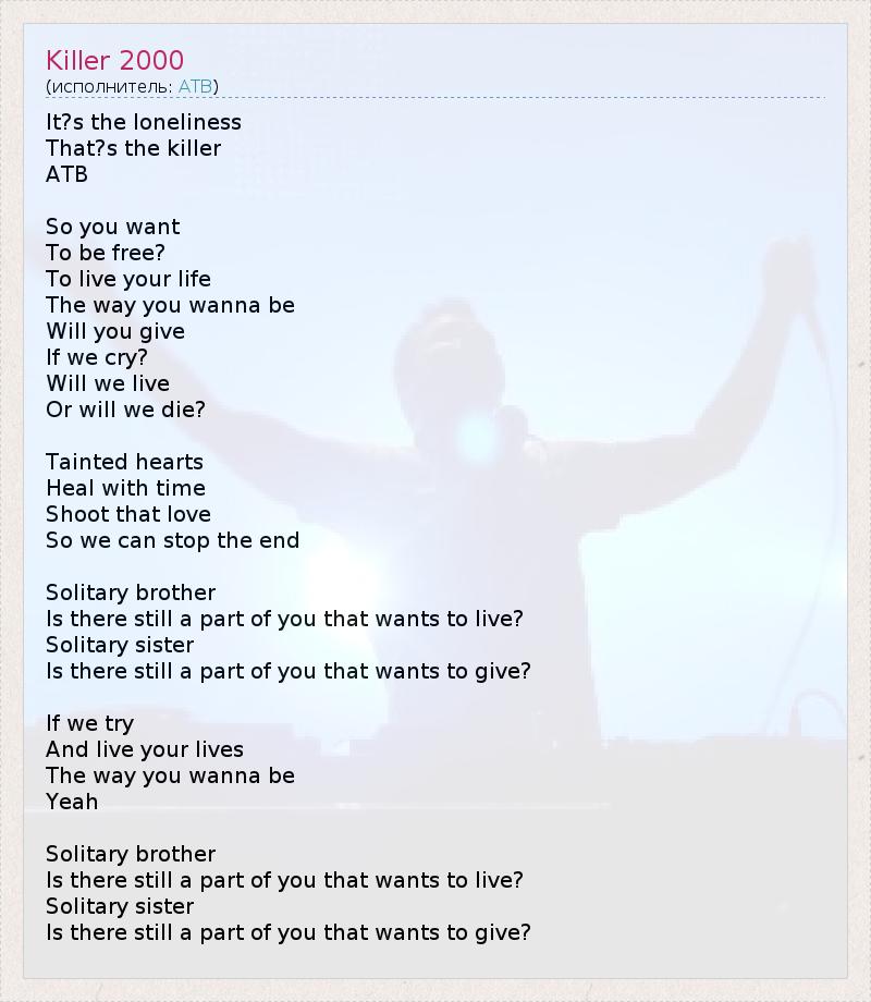 А как ты думаешь, о чем песня "Killer 2000" ?