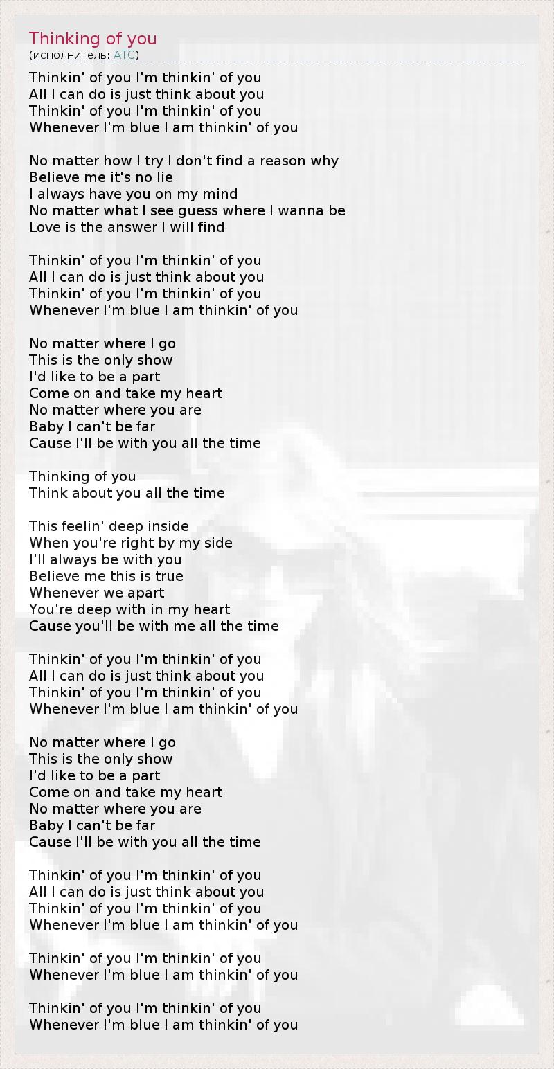 А как ты думаешь, о чем песня "Thinking of you" ?