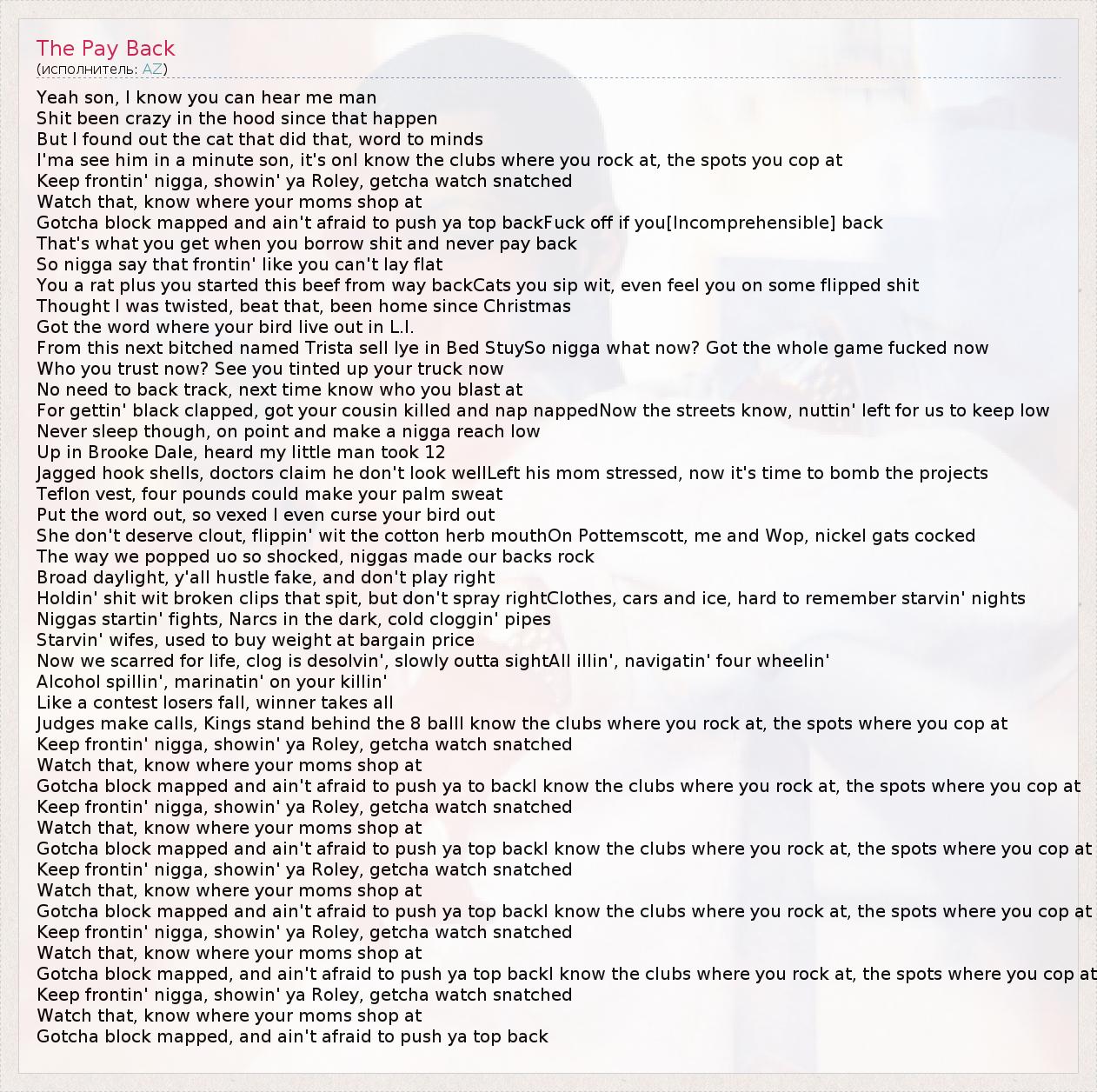 А как ты думаешь, о чем песня "The Pay Back" ?