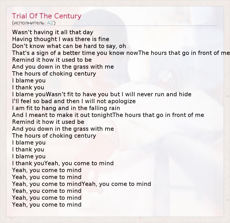 А как ты думаешь, о чем песня "Trial Of The Century" ?