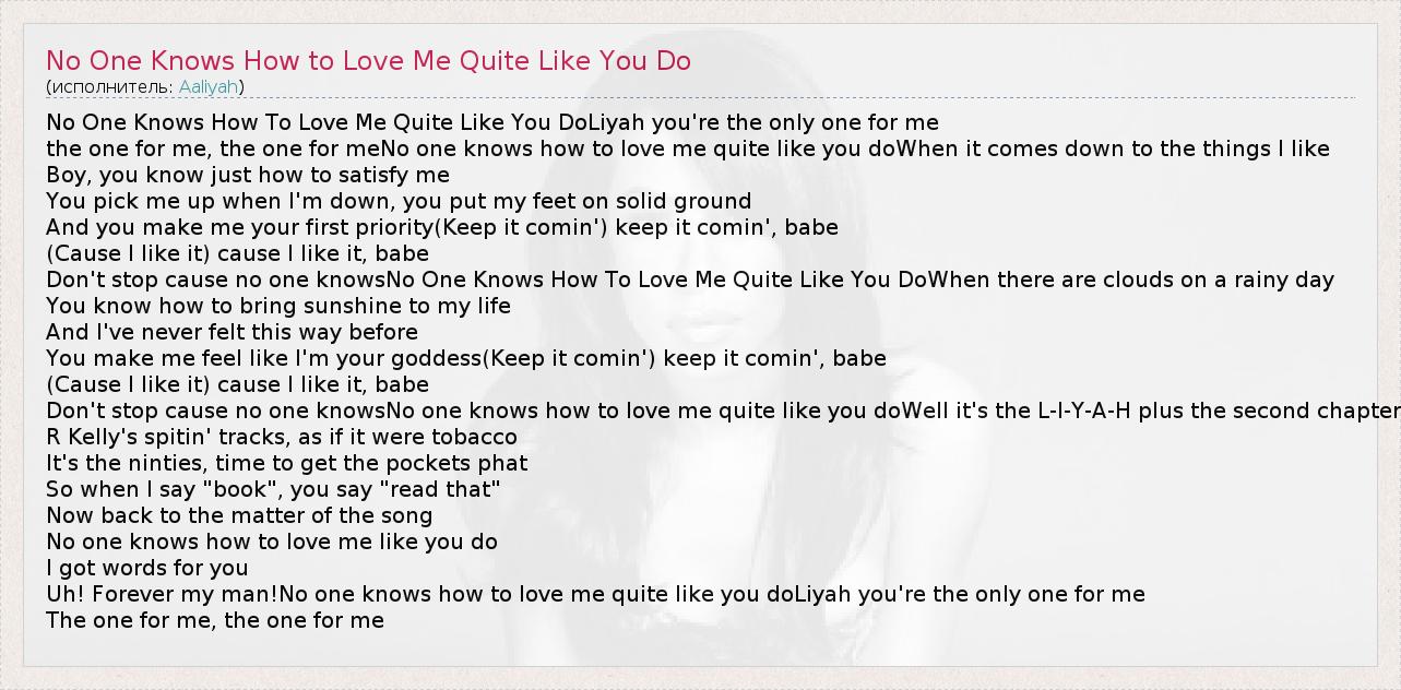ГлавнаяИсполнителиAaliyahNo One Knows How to Love Me Quite Like You Do