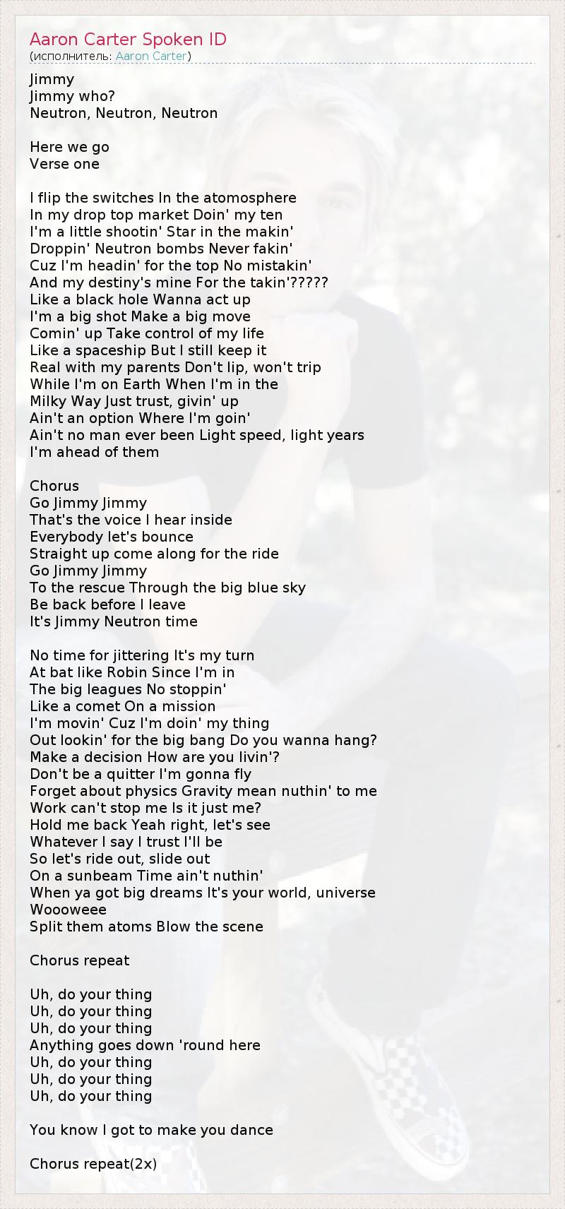А как ты думаешь, о чем песня "Aaron Carter Spoken ID" ?