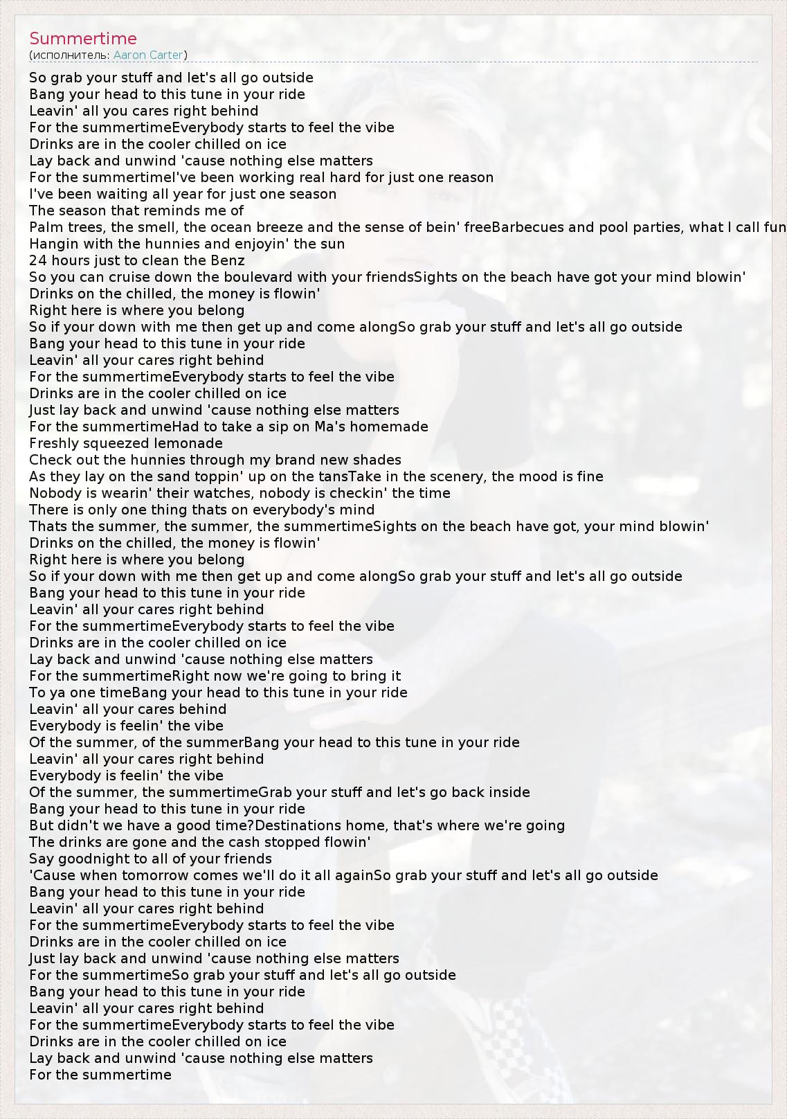 Of the summer, the summertimeGrab your stuff and let's go back inside
