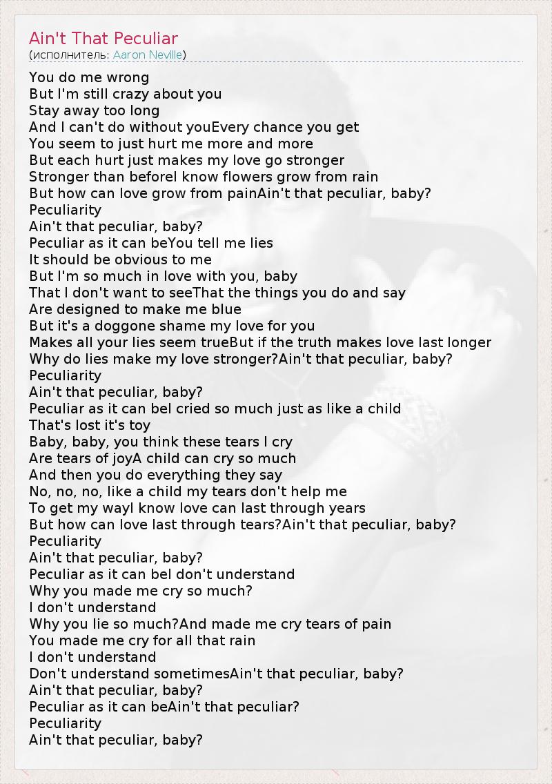 А как ты думаешь, о чем песня "Ain't That Peculiar" ?