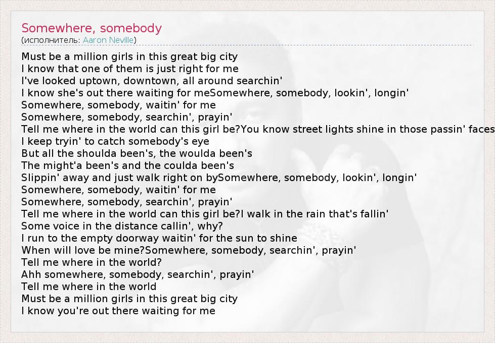 А как ты думаешь, о чем песня "Somewhere, somebody" ?