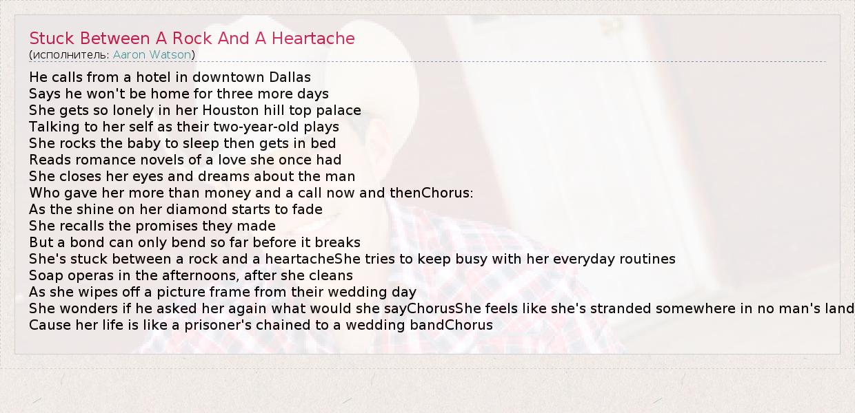 А как ты думаешь, о чем песня "Stuck Between A Rock And A Heartache" ?