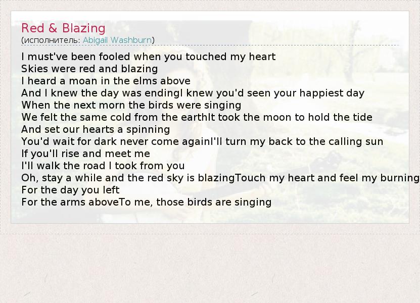 А как ты думаешь, о чем песня "Red & Blazing" ?