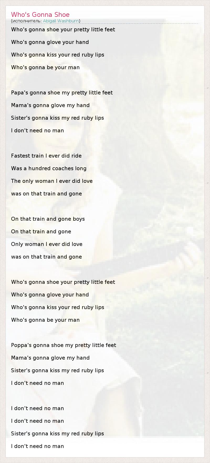 А как ты думаешь, о чем песня "Who's Gonna Shoe" ?