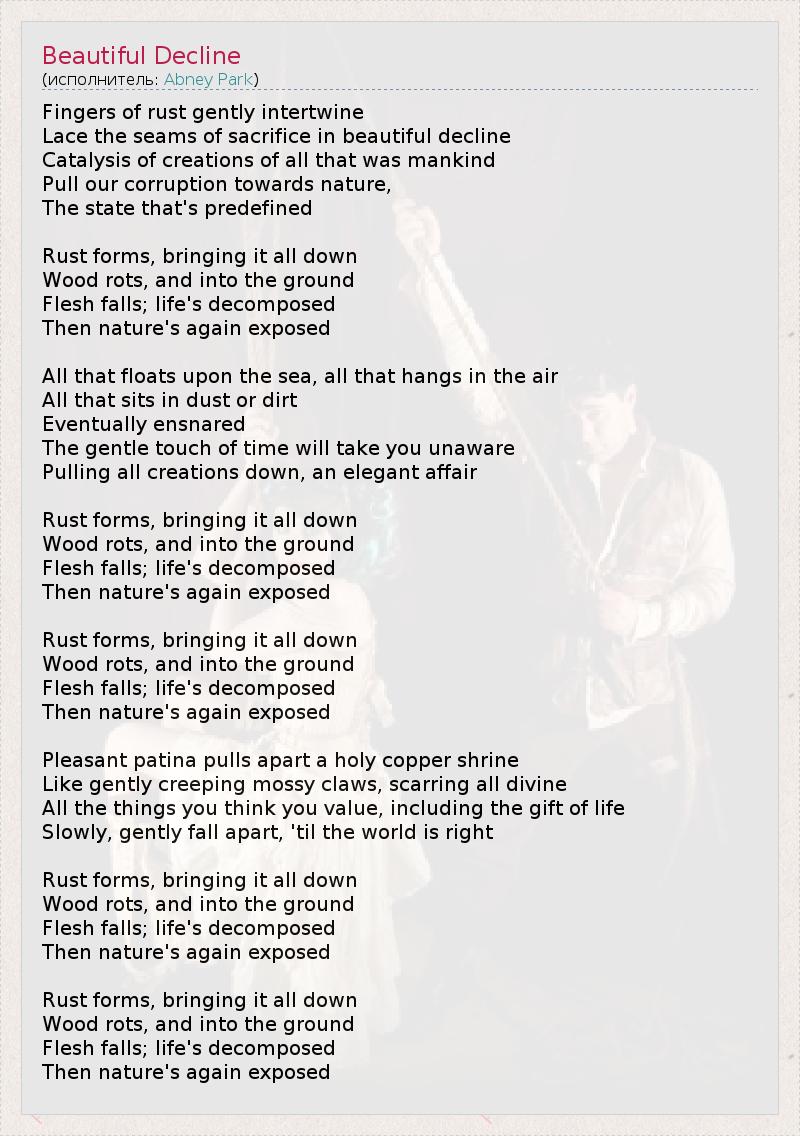 А как ты думаешь, о чем песня "Beautiful Decline" ?